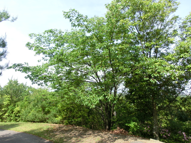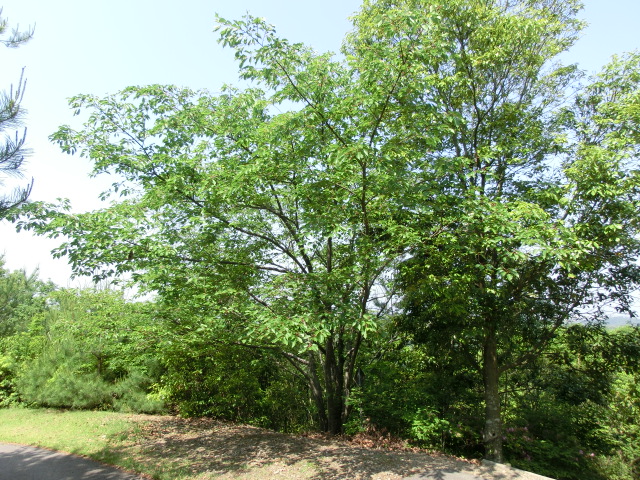 前回訪れた際には、ハリエンジュの花が満開で、クマバチ等の昆虫が蜜や花粉を採取していましたが、今回はハリエンジュの花期は終わっており、代わりにエゴノキが満開を迎えていました。