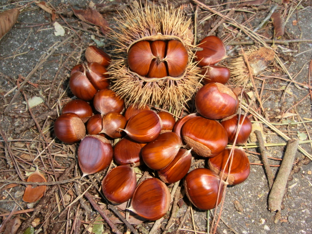 ※林道には、クリ、アカガシ、ツクバネガシ、コナラ等のドングリが沢山落ちていました。