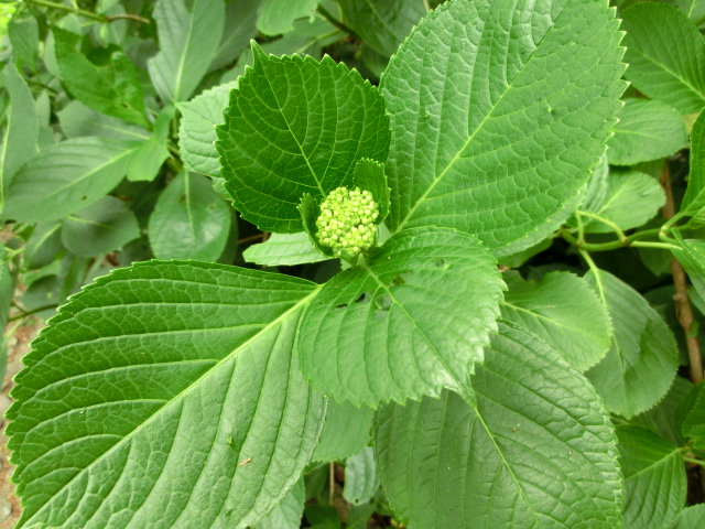 アジサイが蕾を付けていました。