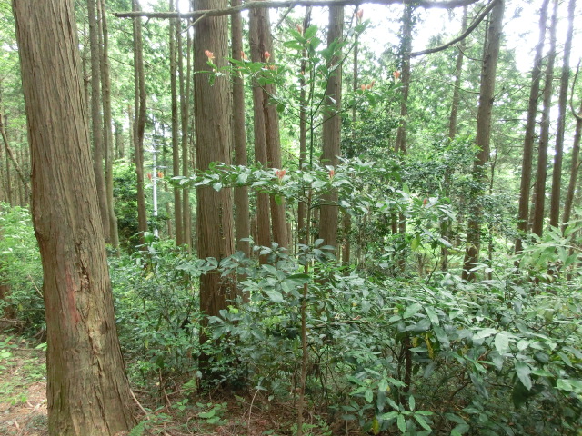 駐車場から展望台へ続く遊歩道では、アジサイが蕾を付け始め、タニウツギが咲いていました。