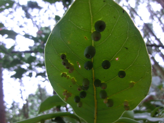 若葉近くの葉裏には、沢山の虫こぶ(タブノキハウラウスフシ)が認められました。