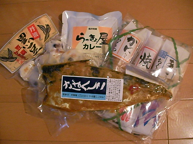 黒豆餅・丹後ちりめんのフクロウ・海上自衛隊のタオル。