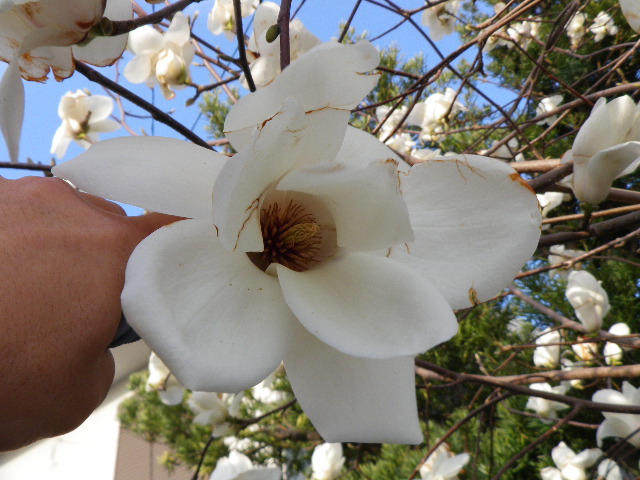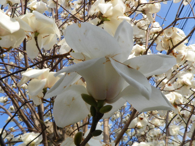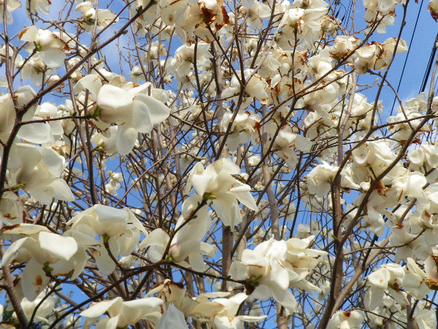 近所のハクモクレンが豪快に開花して、風に揺れている様子が綺麗でした。