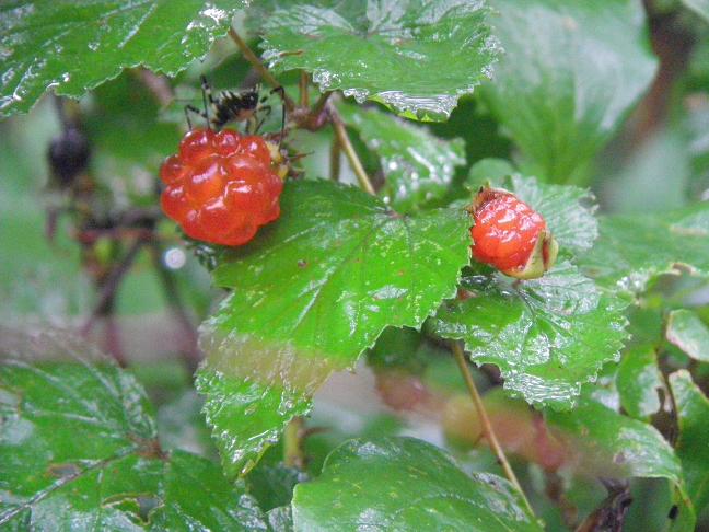 背丈が2m以上あったので、クマイチゴと思い近づいてみると、葉や実の形が違う気がする・・・