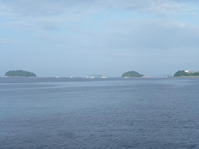 知柄漁港から見た、西浦温泉~沖島・梶島・前島~三ヶ根山です。