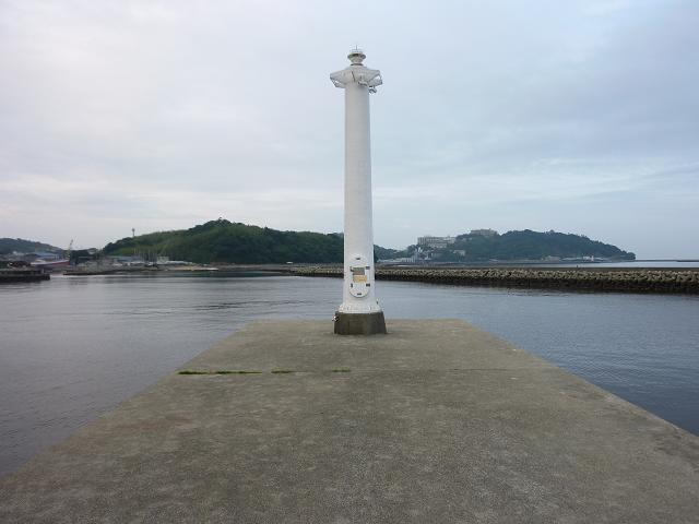 灯台の左に見える山が赤見山で、右は西浦温泉です。
