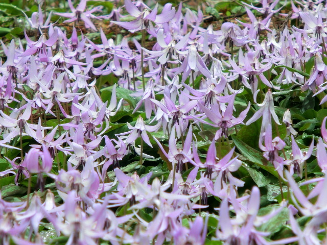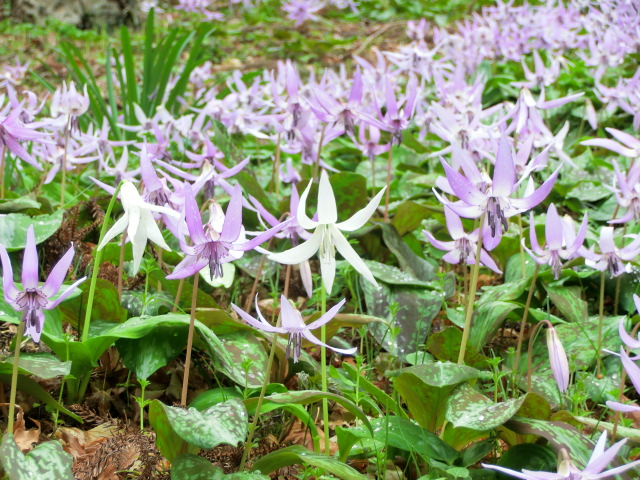 紫色の濃いものから薄いもの、中には白いカタクリもあり、花弁の反り具合も様々で、見ていて楽しかったです。(^^♪