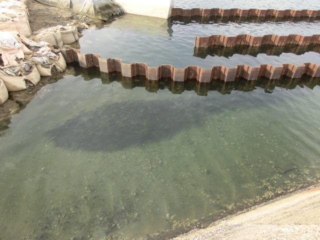 用水路を覗くと、ムムッ・・・何やらスィ~と泳いでいる。