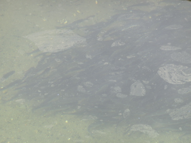 海岸沿いの所々で、約20cmほどのイナ(ボラの若魚)が群れており、ひっかけで釣っている人もいました。