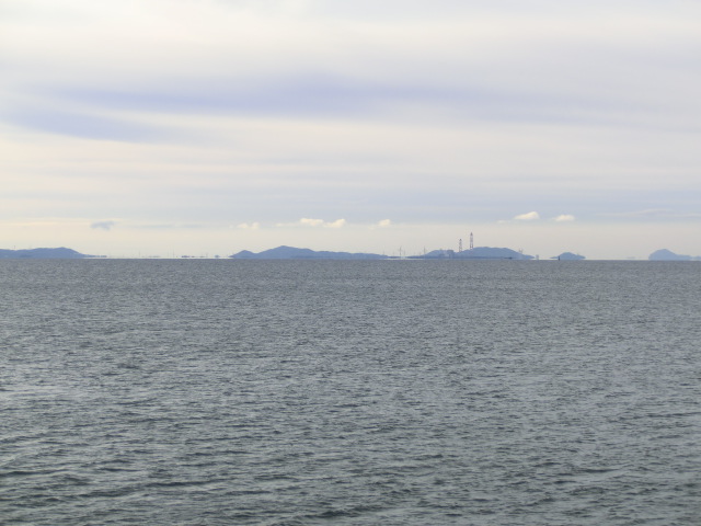 三河湾対岸の渥美半島先端方面には、浮島現象(冬の蜃気楼?)がクッキリと現れていました。