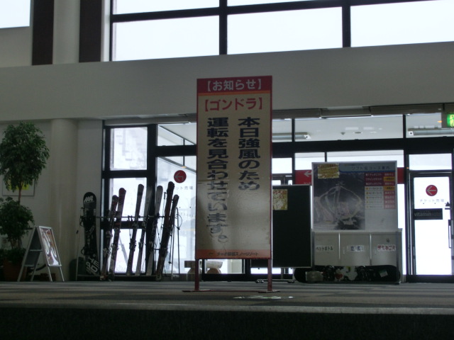 スキー場に着く前は、降雪状況からくるぶしパウダーが楽しめるかも?と期待していたのですが、到着してみるとゴンドラは運休していました・・・orz