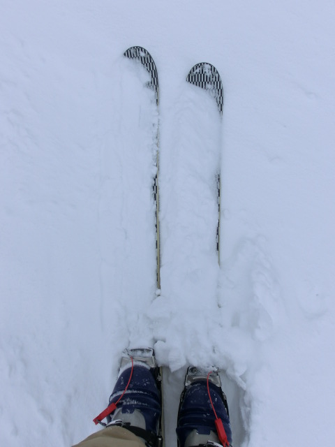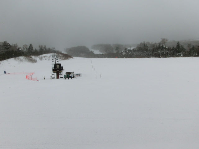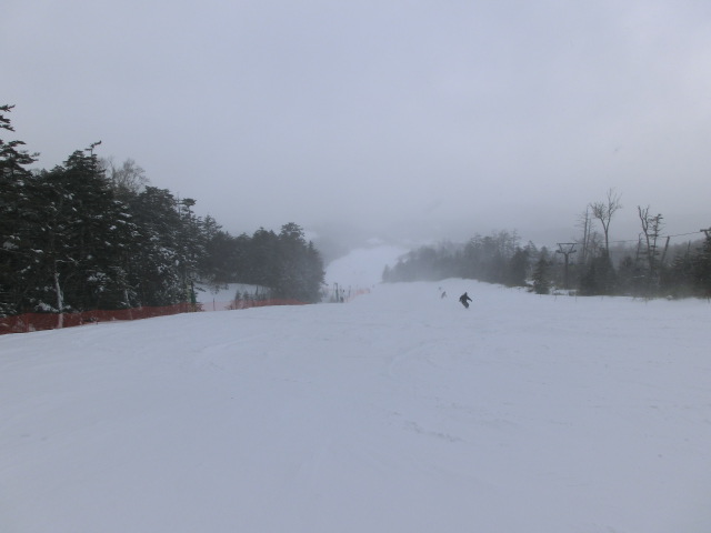 降り続く雪は北西からの強風に吹き飛ばされてしまい、コースには数cmのサラサラパウダーが乗っているだけでしたが、それでも久しぶりに少しだけ柔らかい雪の感触を得ることができ嬉しかったです。(^^♪