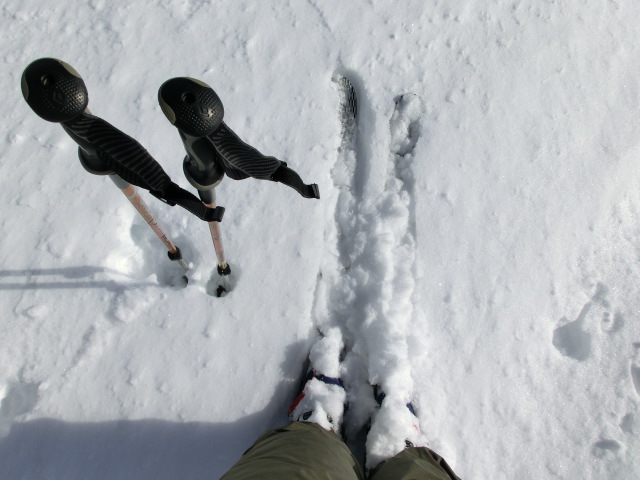散歩が楽しかったので、結局午前中一杯をトレイル散策にあて、スキーは午後から少し滑るだけとなりました。(^_^;)