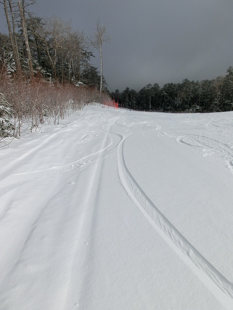 昨日の雨の影響により、ハードバーン上に数cmの新雪が乗っているといった状態でした。
