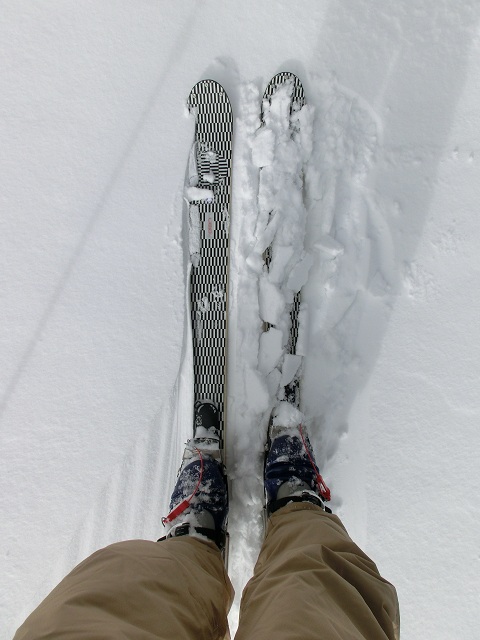 過ぎ去った寒気の影響がまだ少し残っていてくれて、下のリフトしか動いていませんでしたが、コース端には踝程度の柔らかい部位が残っていてくれました。