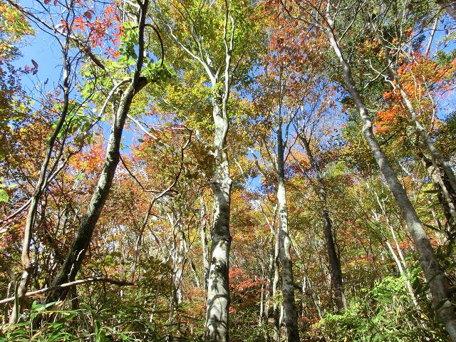 面ノ木広場から面ノ木展望台へ向かうと、色彩豊かな森がありました。
