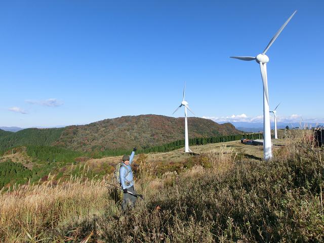 (北側遠方にも大船山の風車が見え、更にその先には御嶽山の頭が顔を覗かせていました。)