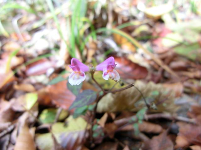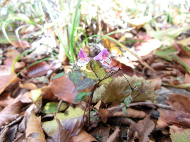 半寄生する1年草で、一般的には8~9月(晩夏~初秋)に開花するそうですが、10月末の標高約1200mで邂逅しました。