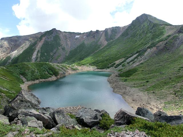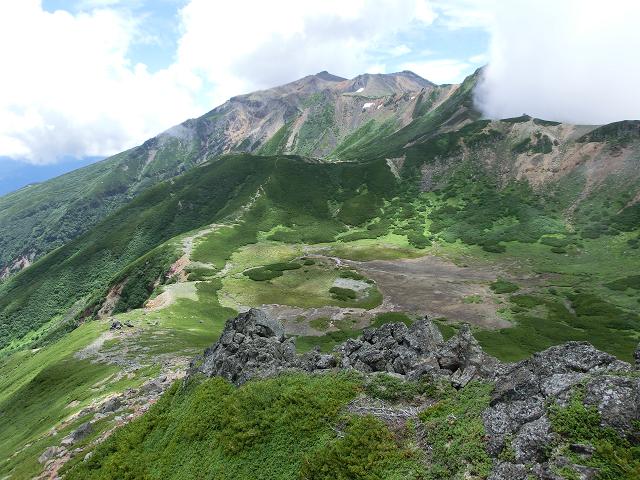 AM10時半頃飛騨頂上に着いたのですが、雲も次々と上がってきており、四の池は雲間から時折覗ける程度しか見ることが出来ませんでした。