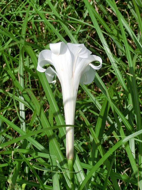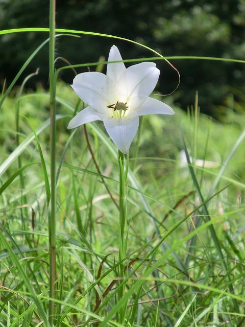 陽光に照らされて、タカサゴユリが数株咲いていました。
