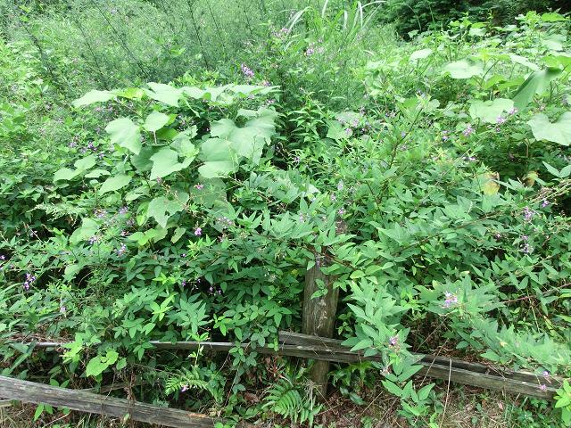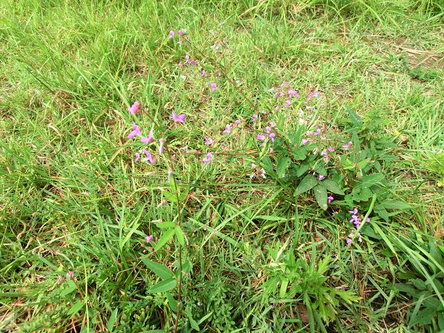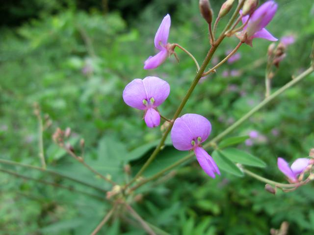 周囲の緑が濃いので、アレチヌスビトハギの小さな赤紫色にも目が向きました。