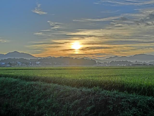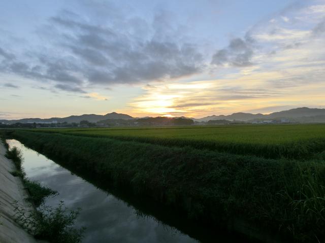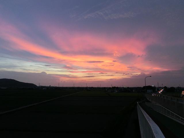 雲も無く、それほど蒸し暑さを感じない爽やかな朝といった印象で、美しい朝焼けを拝むことができました。