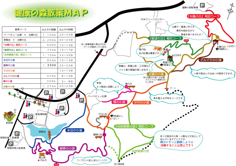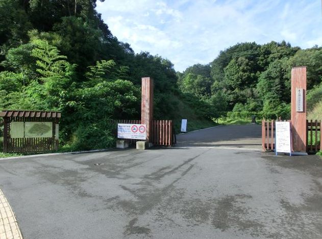 早朝は、右上に記されている健康の森駐車場以外は閉鎖されていました。(左写)