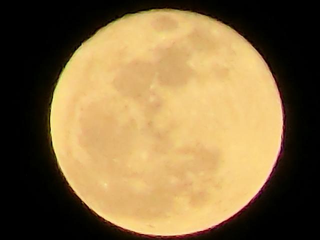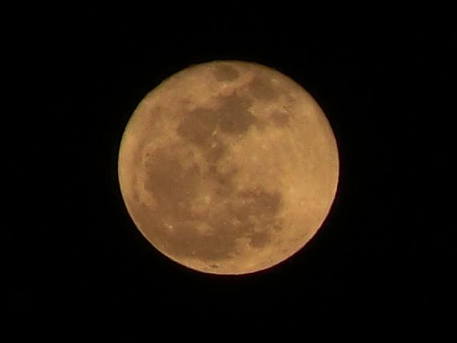 pm7時20分過ぎ、東の山の稜線からドロ~ンと満月が現れました。