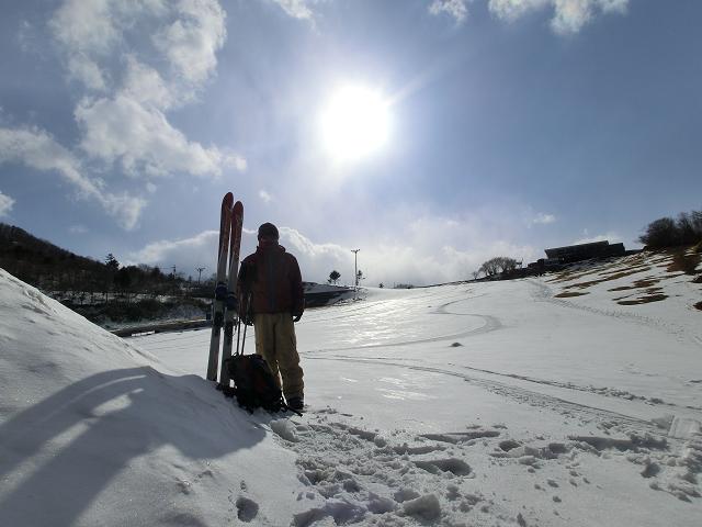 ゲレンデは所々ブッシュが出ていましたが、板を外さずともゲレンデトップまで上がることが出来ました。
