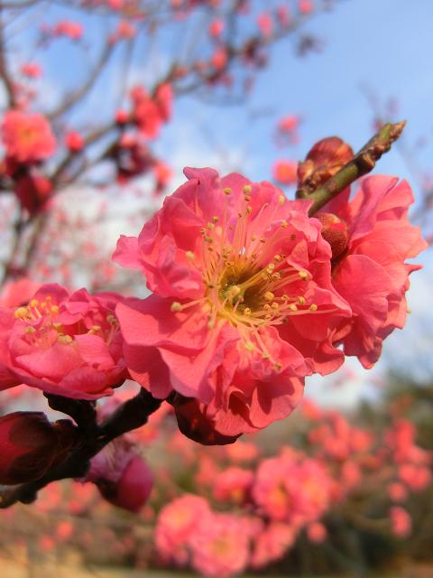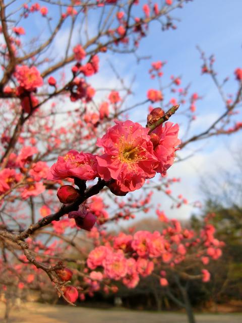 夕方、帰社する際に葵梅林脇を通ると、寒紅梅という種類の開花が始まっており、夕日に染まってとても綺麗でした。(@o@)ワォ!