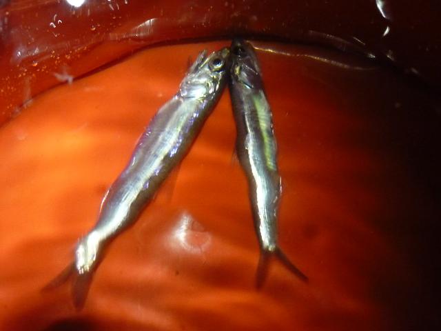 結局、釣れたのはカタクチイワシ2匹のみでした。トホホ・・・
