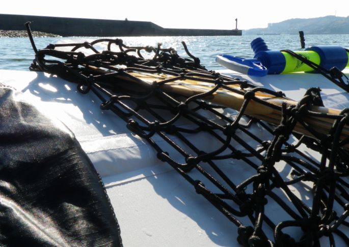 いつもはコーミングとパドルを一緒に握り再乗艇するのですが、それが上手くいかない場合にフネにパドルが固定できれば楽だろうなと・・・