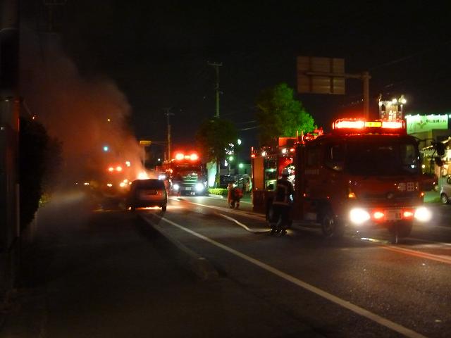 ん・・・何があった?とよく見ると、車が炎上していました。