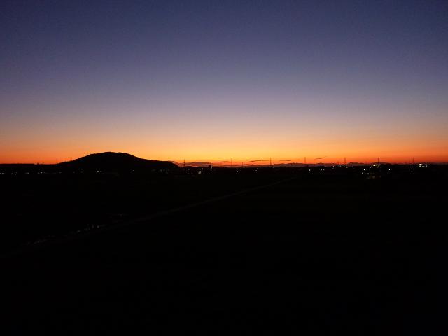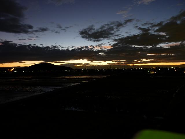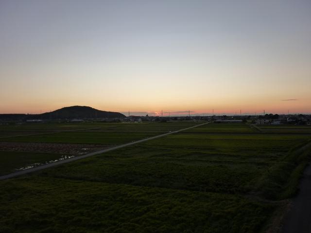 朝日を見るのは久しぶりだったのですが、夏の頃に比べ大分日の出時刻が遅くなっていました。