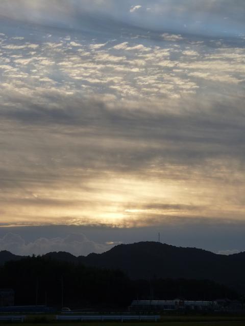 山の稜線上に積乱雲が少し認められ、太陽光は低い雲のに遮られ、その上のは巻積雲が認められました。