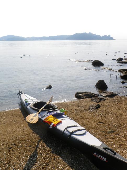 梶島へ漕ぎ出すと、南東から少しウネリが入っていましたが、風はほとんど無く、順調に梶島に到着しました。