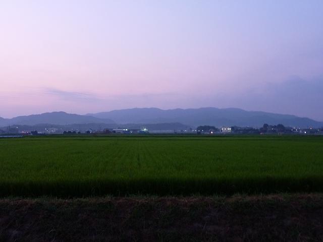 こんな雲の無い朝は、東南方面の桑谷山・遠望峰山にもムラサキのベールが届きます。