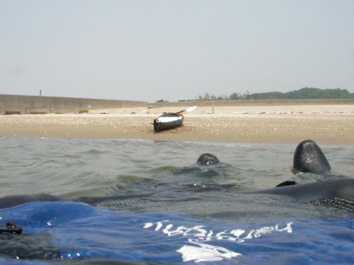 とりあえず海へ行ってみたら、干潮で海水がない・・・
