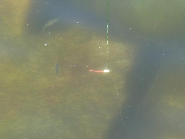 今朝の様子では、臭いや味が付いているだけでは集魚効果は低いようで、やはり動きによるア