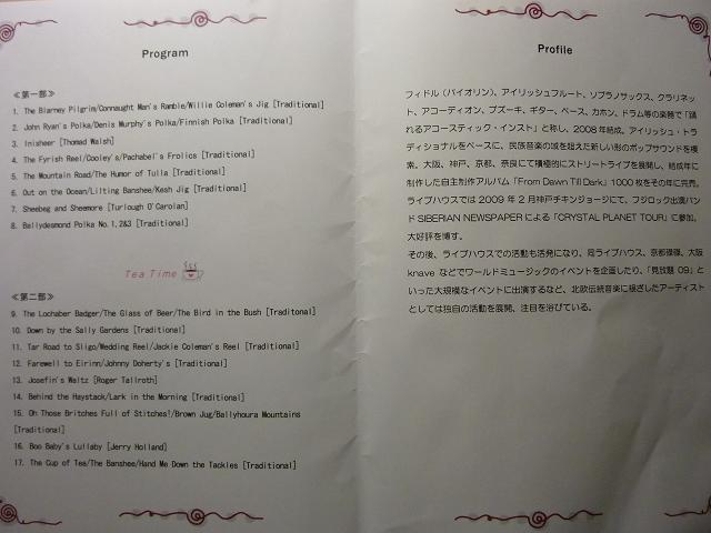 SHEENAというバンドの演奏で、アイルランドを主とした北欧方面の音楽を聞くことができました。