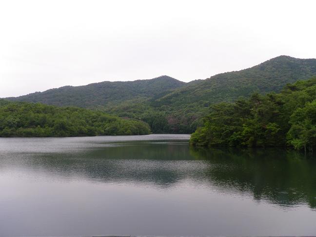 築水池から見た、弥勒山(436,6m)と大谷山(425m)です。(左写)