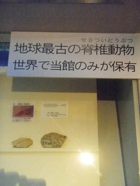 世界でココにしか展示されていない、世界最古の脊椎動物であるハイコウイクチスの化石がありました。(右写)