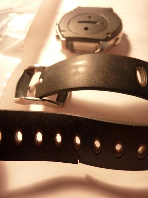 腕に巻いた時、余ったベルトを通す部分は既に無く、ベルト自体が切れてきてしまいました。(中写)