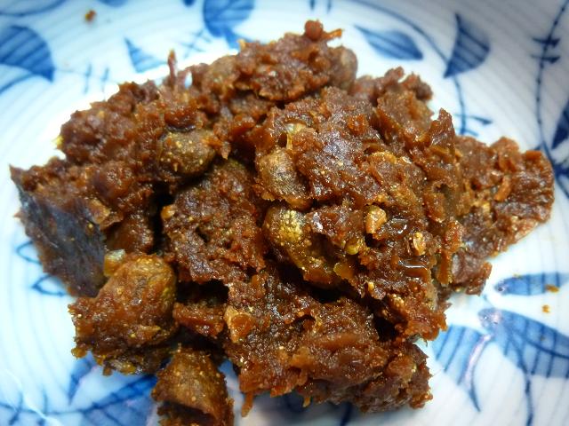 掘り下げてみると、色は赤味が増し、豆麹の形が残っていました。