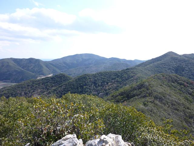 中写:左に物見山、真ん中にタコウド(275、2m)、右に見晴し岩がありました。