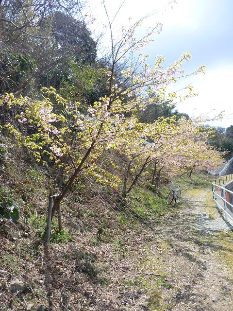 渥美半島の今掘川の土手に、河津桜が咲いていました。
