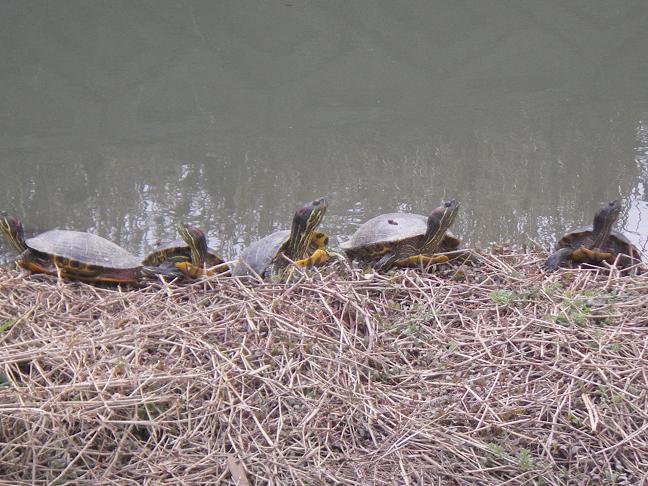 足元を覗けば、ミシシッピアカミミガメ達が上を向いていました。