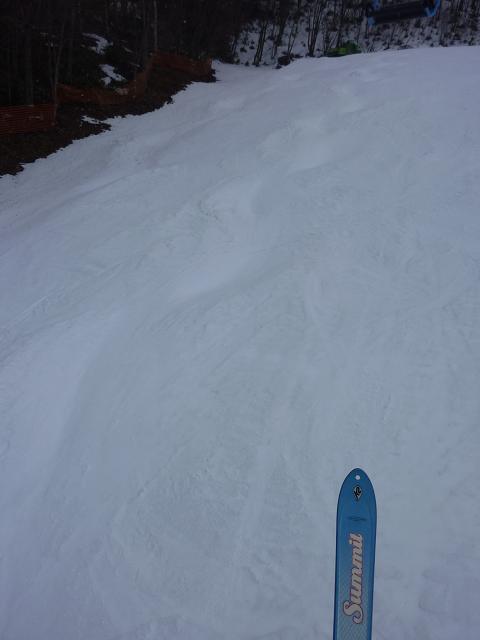ゴンドラを降りると、いきなりこんな非圧雪箇所が待っていました。(中写)