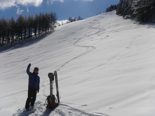 スキー場跡地は、スノーモービルの轍でズタズタになっており、雪が緩んでくれば問題ないのですが、固い時は注意が必要でした。
