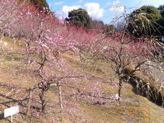 自宅近くの南公園にある梅林と比べ、種類も数も多いようです。